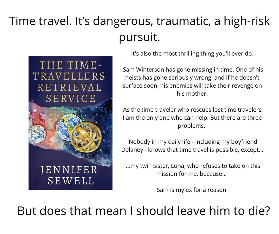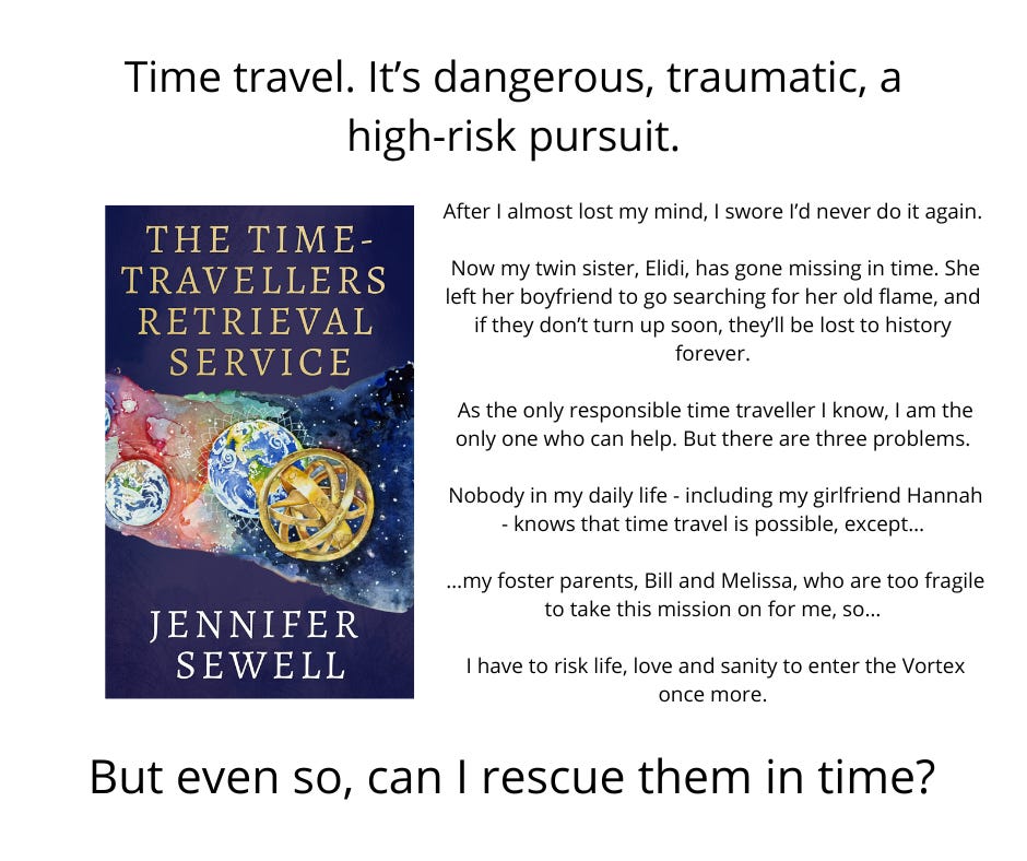 My Time Travellers stretches from London to Devon to Bermuda to North Carolina, from 2019 to 1970 to 1993 to 1802. It follows the story of Elidi and Luna, twin sisters who have the ability to travel through time, and the lives they are trying to build. Luna longs for love and has turned her back on time-travel, while Elidi rescues people caught out of time, keeping her unusual abilities secret from her boyfriend Delaney, until the missing person she’s called to retrieve turns out to be her significant ex, Sam. Before too long, everyone is involved in an adventure that’s bigger than any of the individuals…